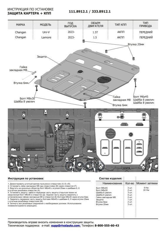 Защита картера + КПП Алюминевый Changan UNI-V,V-1.5 ,2023_