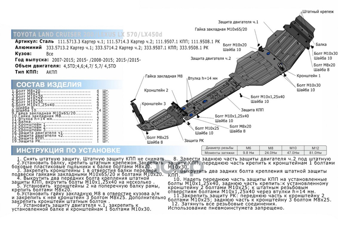 Наименование: Защита КПП комплект крепежа, Lexus LX 2015-, V - 4.5d, 5.7Lexus LX 2008-2015, V