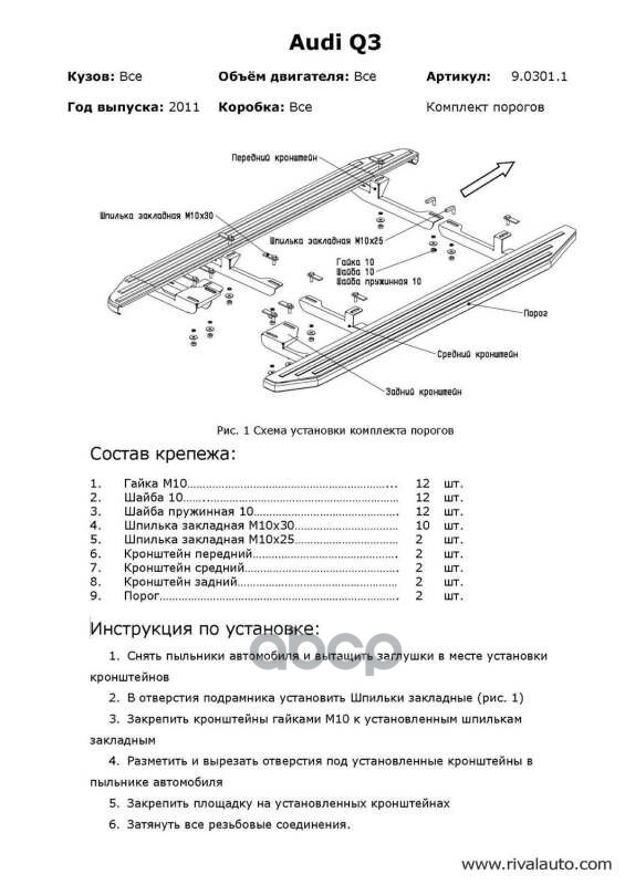 Комплект крепежа к порогам Audi Q3 2011-2017