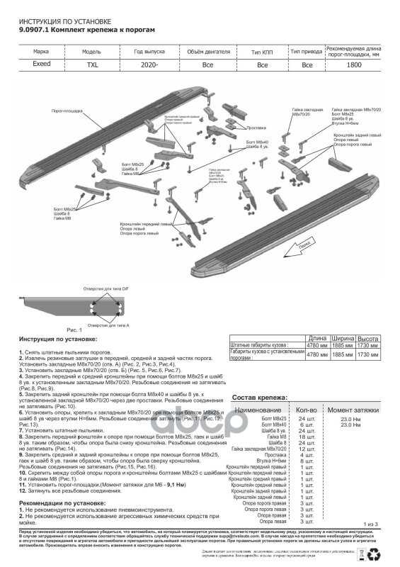 Наименование: Комплект крепежа к порогам Exeed TXL 2020-