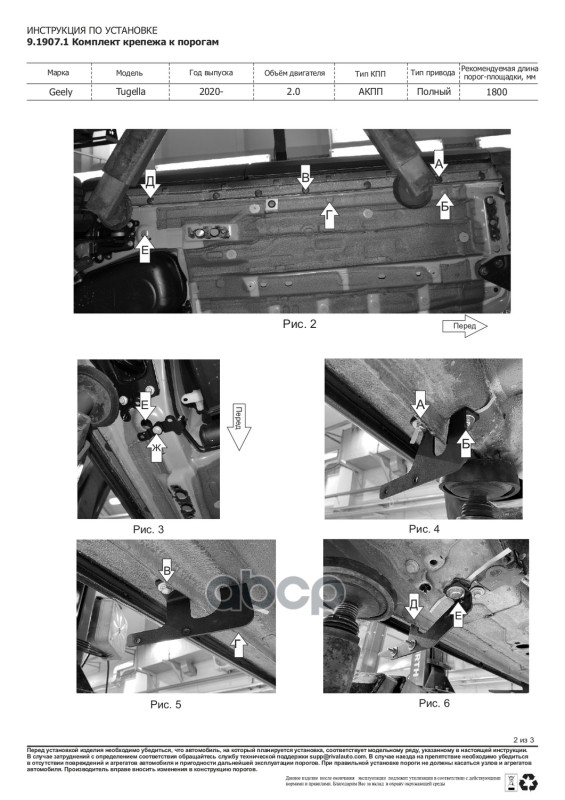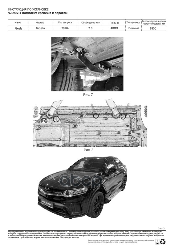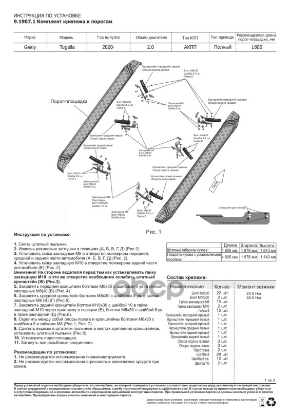 Комплект крепежа к порогам Geely Tugella 2020-2024, KnewStar 001 2024-