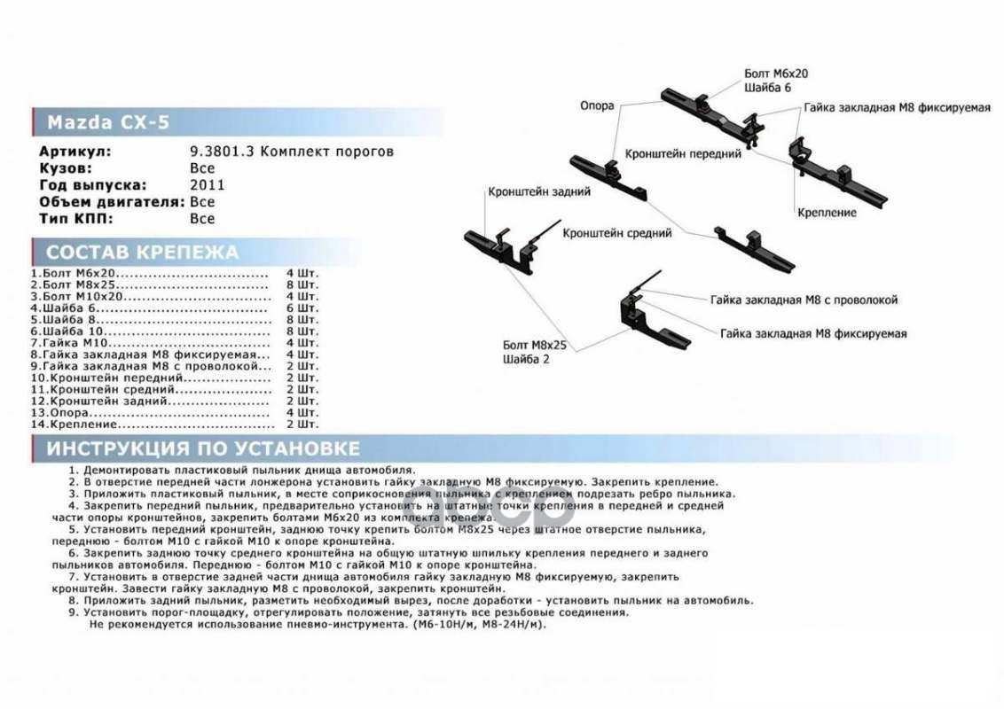 Наименование: Комплект крепежа к порогам Mazda CX-5 2011-2017