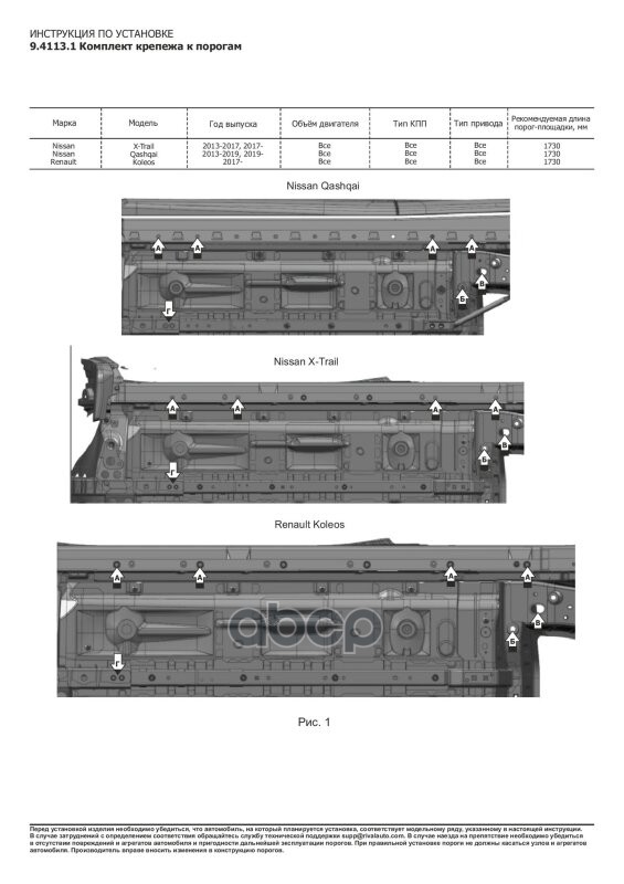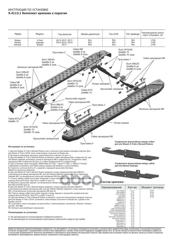 Наименование: Комплект крепежа к порогам Nissan X-Trail T32 2014-2022, Nissan Qashqai 2014-202