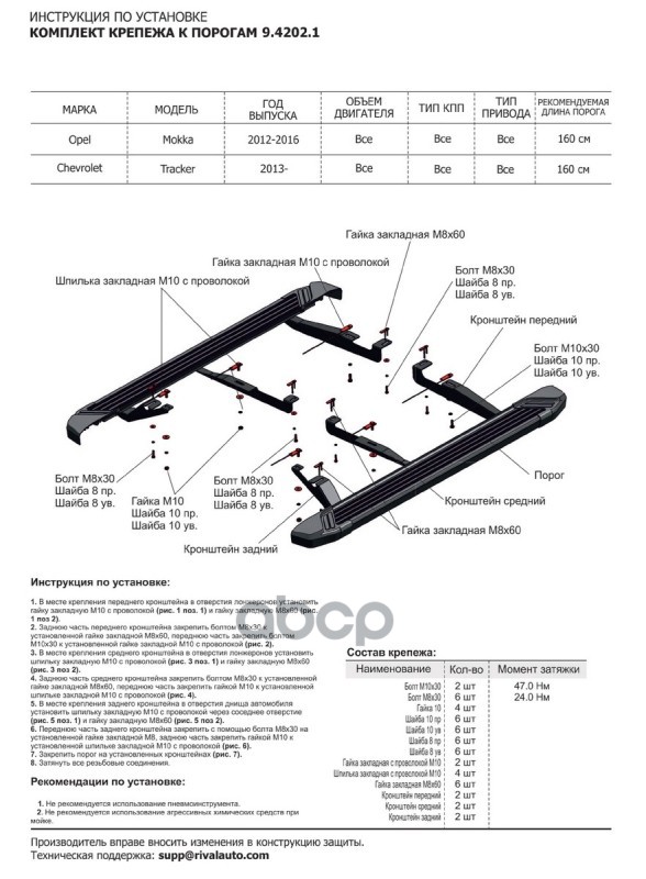 Наименование: Комплект крепежа к порогам Opel Mokka 2012-2016, Chevrolet Tracker 2013-2015