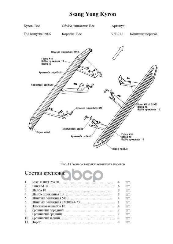 Купить запчасть 953011 Комплект крепежа к порогам SsangYong Kyron 2007-2015 с доставкой в Эль-Монте.
