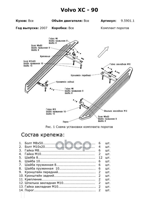 Наименование: Комплект крепежа к порогам Volvo XC-90 (2007) AL