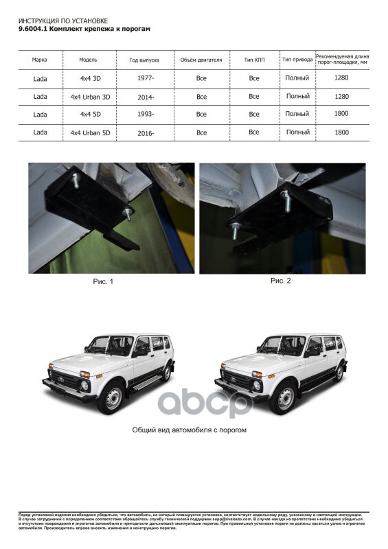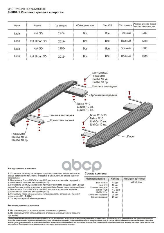 Наименование: Комплект крепежа к порогам Lada Niva Legend 2021-, Lada 4x4 5 дверей 1993-2021,