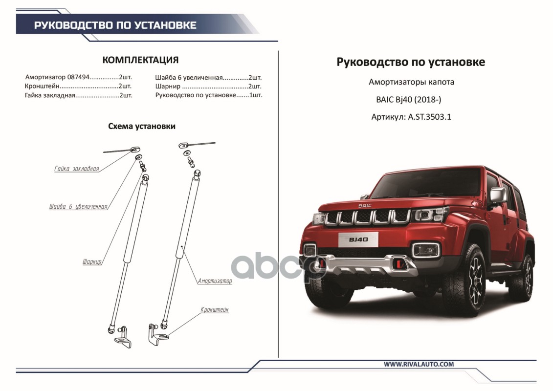 Наименование: Амортизаторы капота Rival 2шт ) BAIC BJ40 2018 )