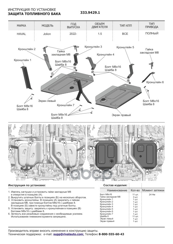 Наименование: Комплект защит картер + КПП + топливный бак + редуктор (алюминий 3 мм) + комплек