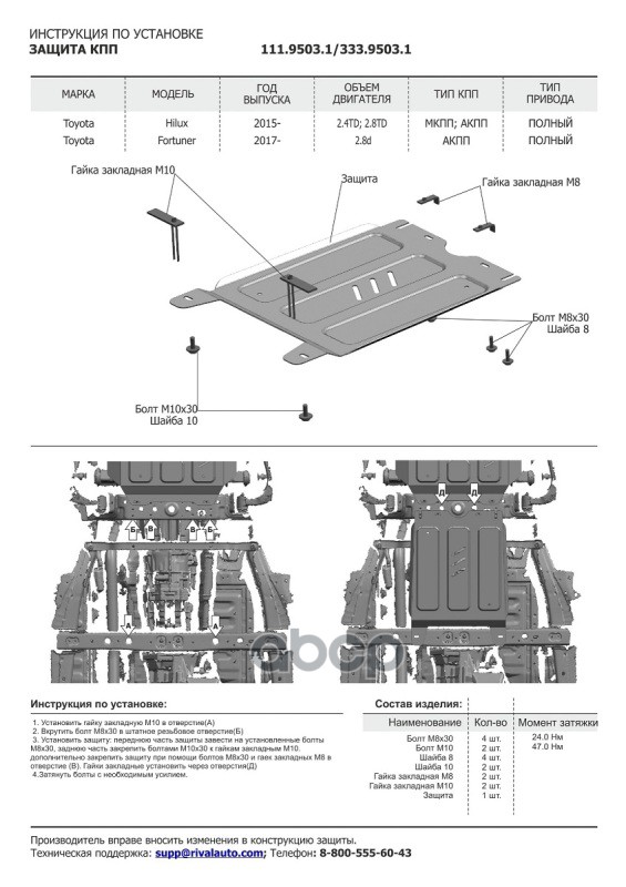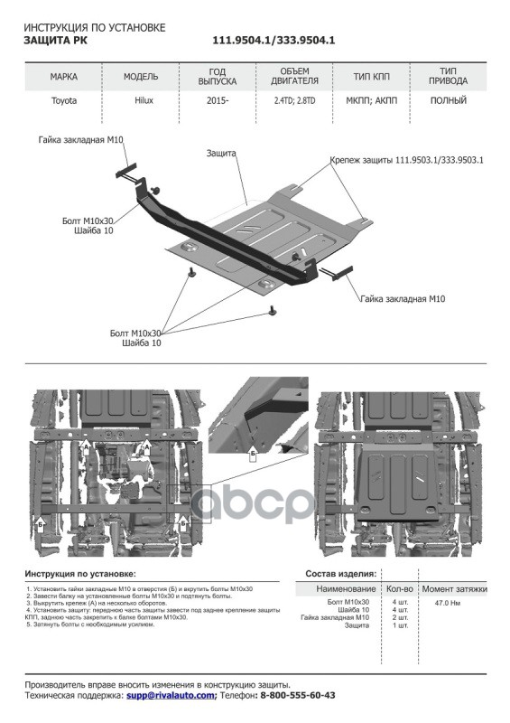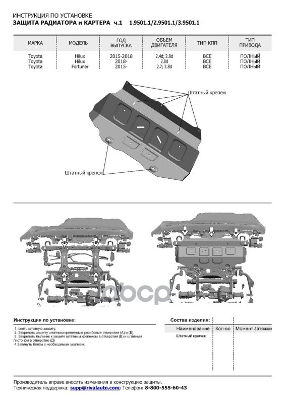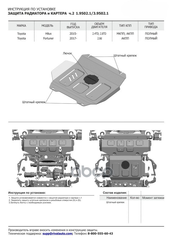 Наименование: Комплект защит радиатор + картер + КПП + РК (алюминий 3,8 мм) + комплект крепежа