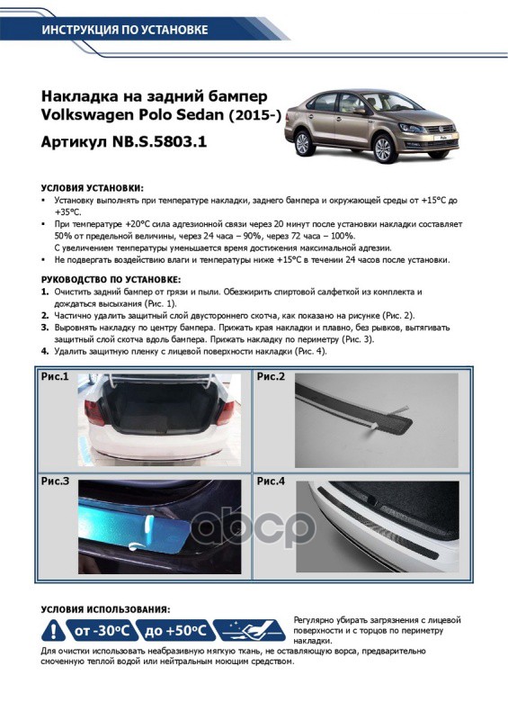 Наименование: Накладка багажника Volkswagen Polo Sedan (2015-)