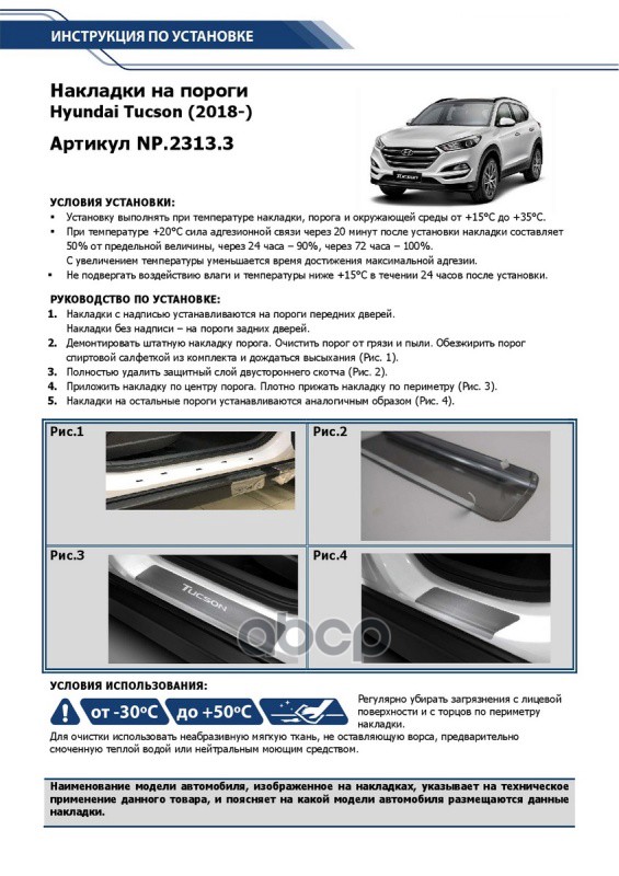 Наименование: НАКЛАДКИ ПОРОГОВ HYUNDAI TUCSON 2018