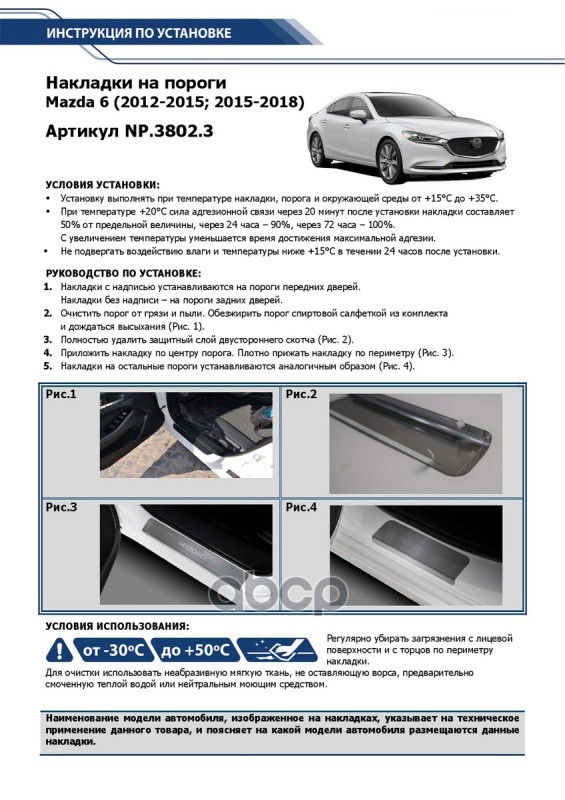 Наименование: Накладки порогов (4 шт.) MAZDA 6 GJ, GJ рестайлинг 2012-2015 / 2015-2018 / 2018-