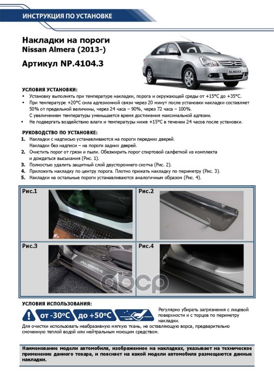 Купить запчасть NP41043 Накладки порогов (4 шт.) Nissan Almera 2013-2018 (гравировка Almera) с доставкой в Эль-Монте.