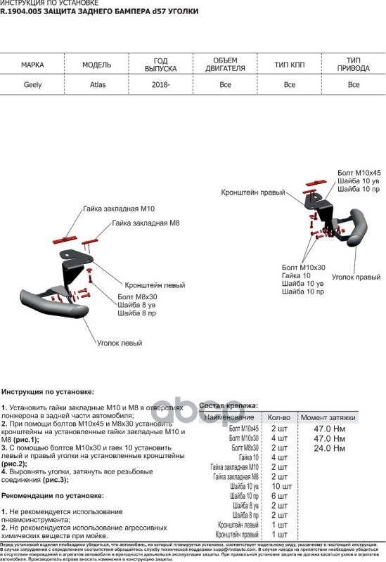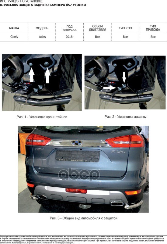 Купить запчасть R1904005 Защита бампера заднего d57 уголки Geely Atlas 2018- с доставкой в Эль-Монте.