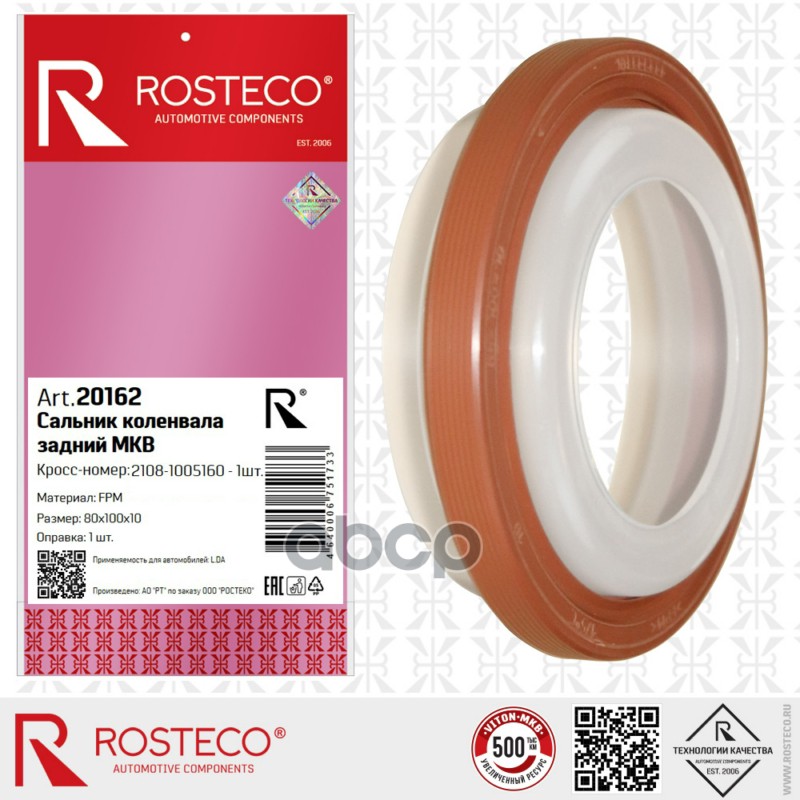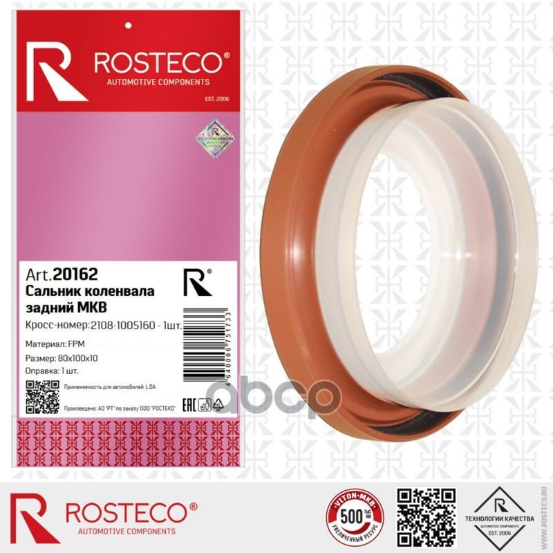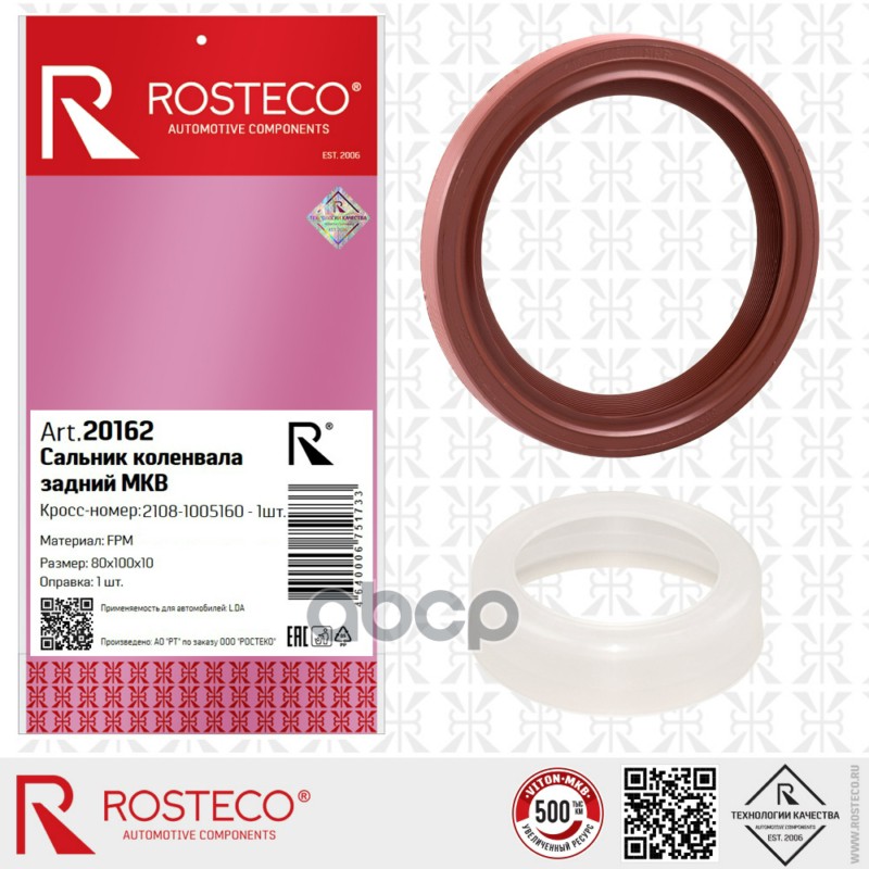 Купить запчасть 20162 Сальник коленвала задний для а/м ВАЗ 2108 (FPM 80х100х10), Rosteco с доставкой по России.