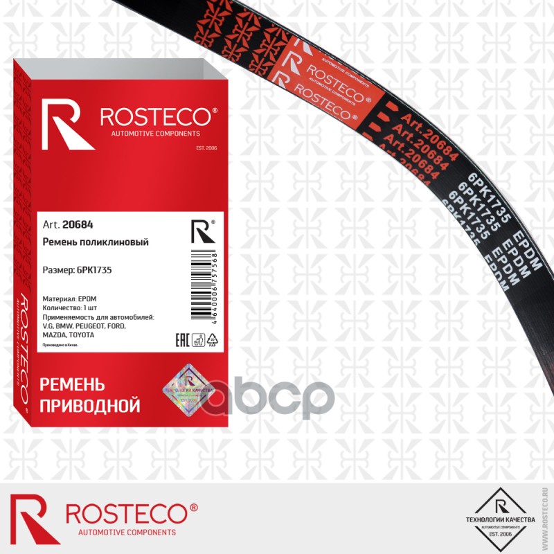 Купить запчасть 20684 Ремень поликлиновой 6PK1735 Rosteco Polo седан, Octavia, Roomster, Superb 20684 с доставкой в Эль-Монте.