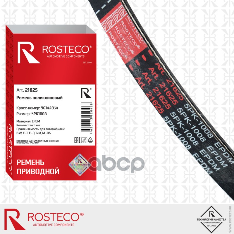 Наименование: Ремень поликлиновой 5PK1008 Rosteco Daewoo Nexia DOHC генератора c ГУР 21625