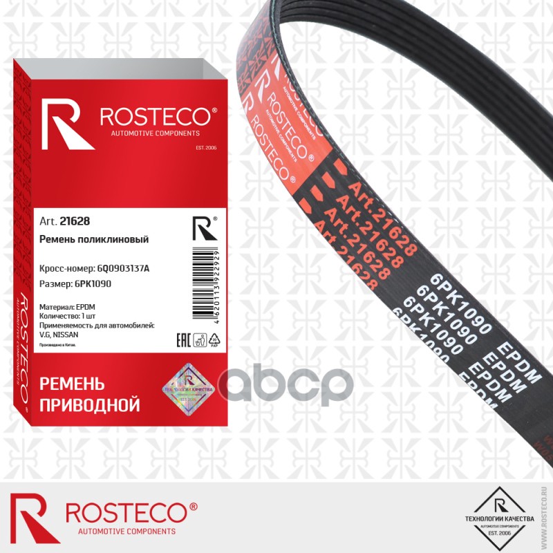 Купить запчасть 21628 Ремень поликлиновой 6PK1090 Rosteco VAG Golf 5, Passat, Jetta/Skoda Octavia, Rapid,Yeti 21628 6PK1090;1987948381;6PK1090;6PK1090;6PK1090;46806146;6PK1090;FB6PK1090;AD15357;6PK1090;119209F615;6PK1090;6PK1090;6K1090;0601090SX;6PK1090;6PK1090;04L145933; с доставкой в Эль-Монте.