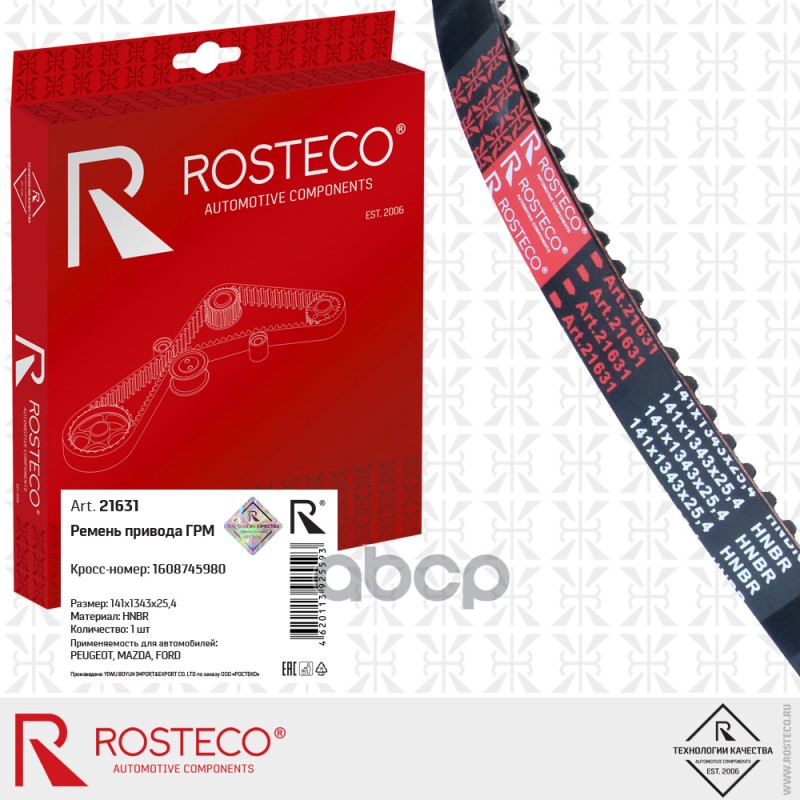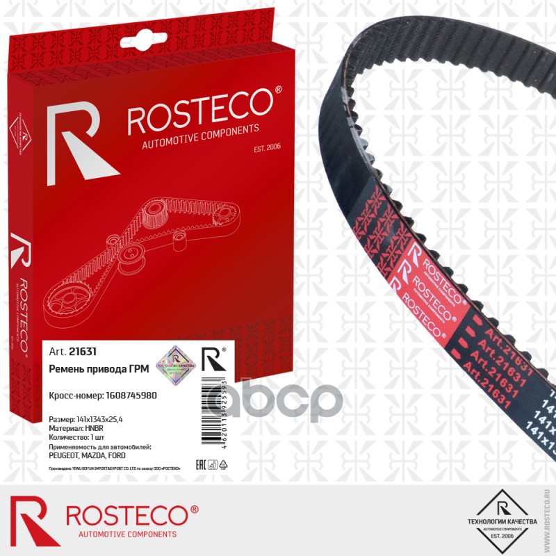 Купить запчасть 21631 Ремень ГРМ PEUGEOT, MAZDA, FORD, (141x1343x25,4) HNBR . 1608745980 "ROSTECO" с доставкой в Эль-Монте.