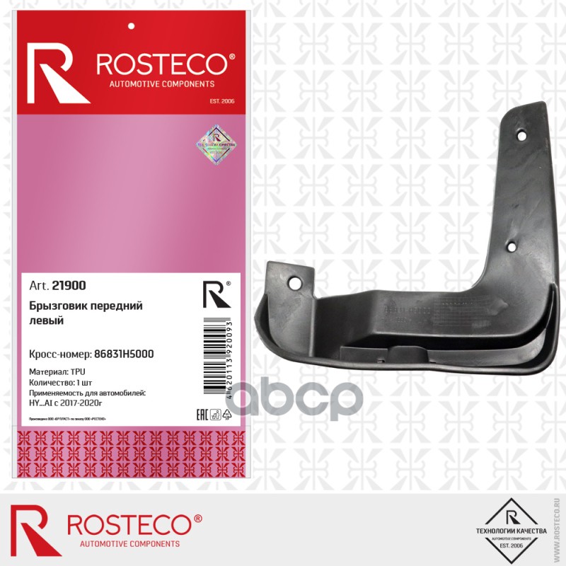 Бренд: Rosteco, артикул: 21900, Брызговик передний левый HYUNDAI Solaris (17-) TPU 86831H5000 Rosteco 86831H5000 86831H5000. |