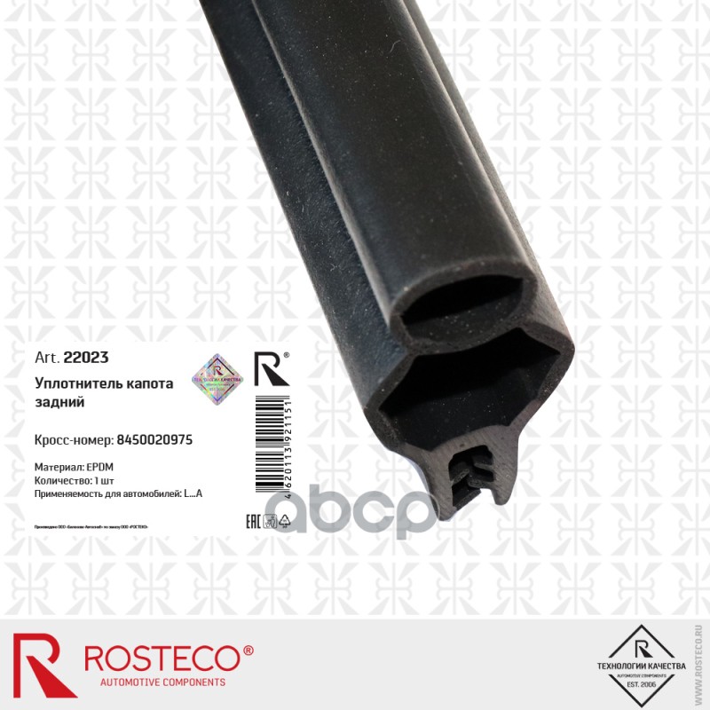 Бренд: Rosteco, артикул: 22023, Уплотнитель капота задний EPDM 22023 8450020975. |