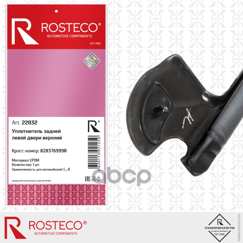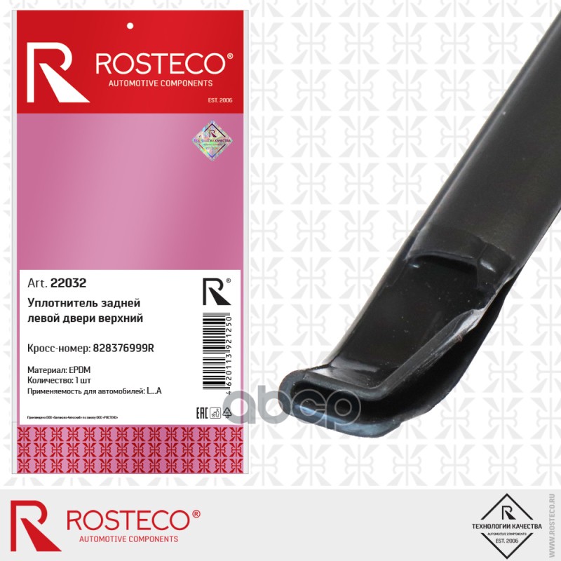 Бренд: Rosteco, артикул: 22032, Уплотнитель задней левой двери верхний Лада X-Ray 28376999R (EPDM), ROSTECO 828376999R 828376999R. |
