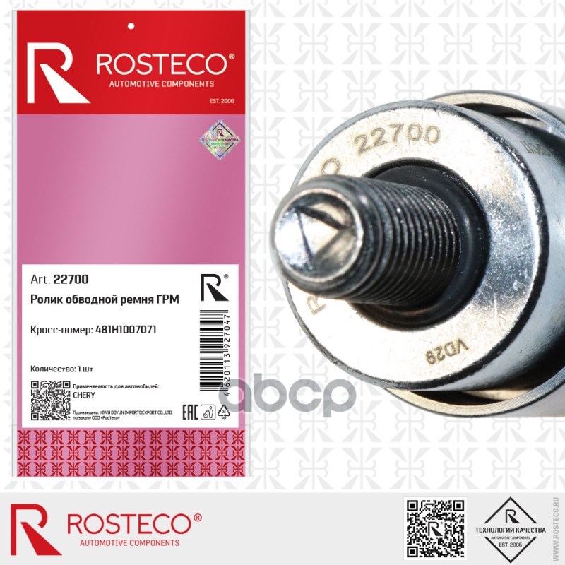 Купить запчасть 22700 Ролик ГРМ CHERY, обводной. 481H1007071 "ROSTECO" с доставкой в Эль-Монте.