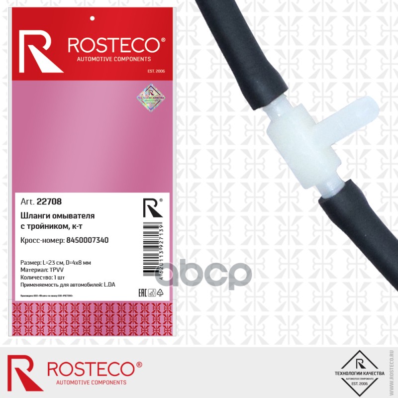 Купить запчасть 22708 Шланг омывателя LADA Vesta, с тройником (к-т 3 дет) TPVV. 8450007340 "ROSTECO" с доставкой в Эль-Монте.