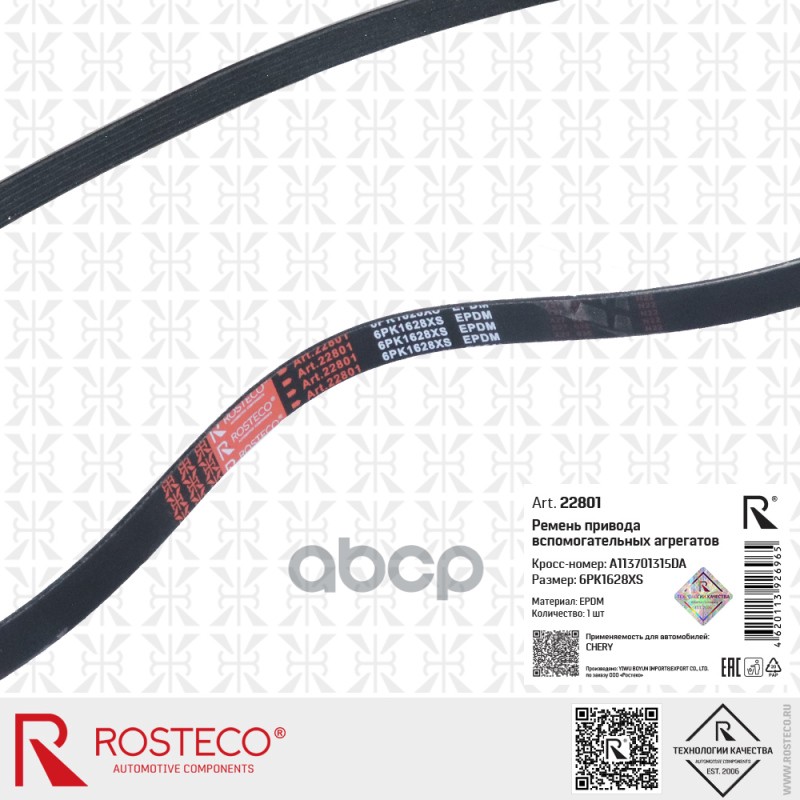 Купить запчасть 22801 Ремень приводной CHERY, (6XPK1628) EPDM. B113701315BA "ROSTECO" с доставкой в Эль-Монте.