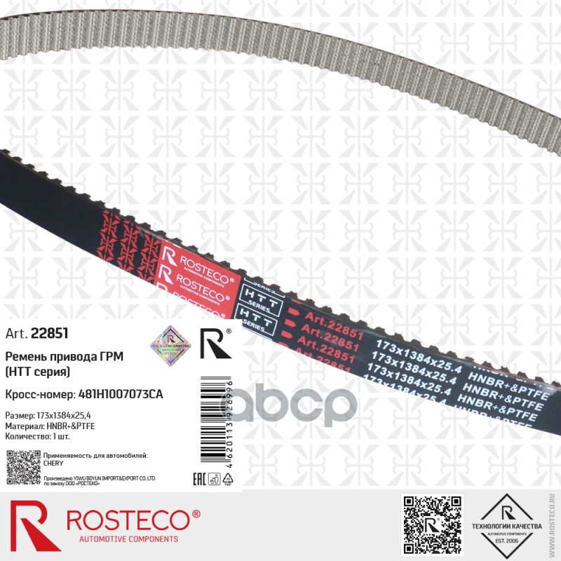 Купить запчасть 22851 Ремень ГРМ CHERY, FIAT, 173x1384x25 HNBR&PTFE. 481H1007073CA "ROSTECO" с доставкой в Эль-Монте.