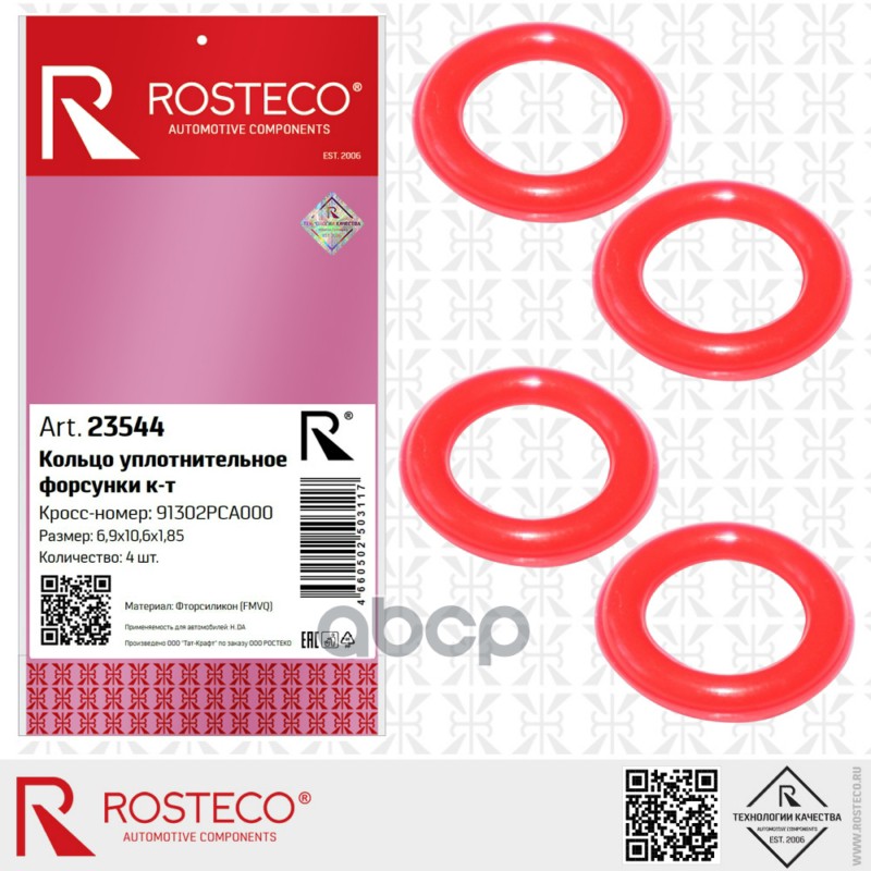 Купить запчасть 23544 Кольцо уплотнительное HONDA, форсунки (к-т 4 шт) (6,9*1,85) FMVQ. 91302PCA000 "ROSTECO" с доставкой по России.