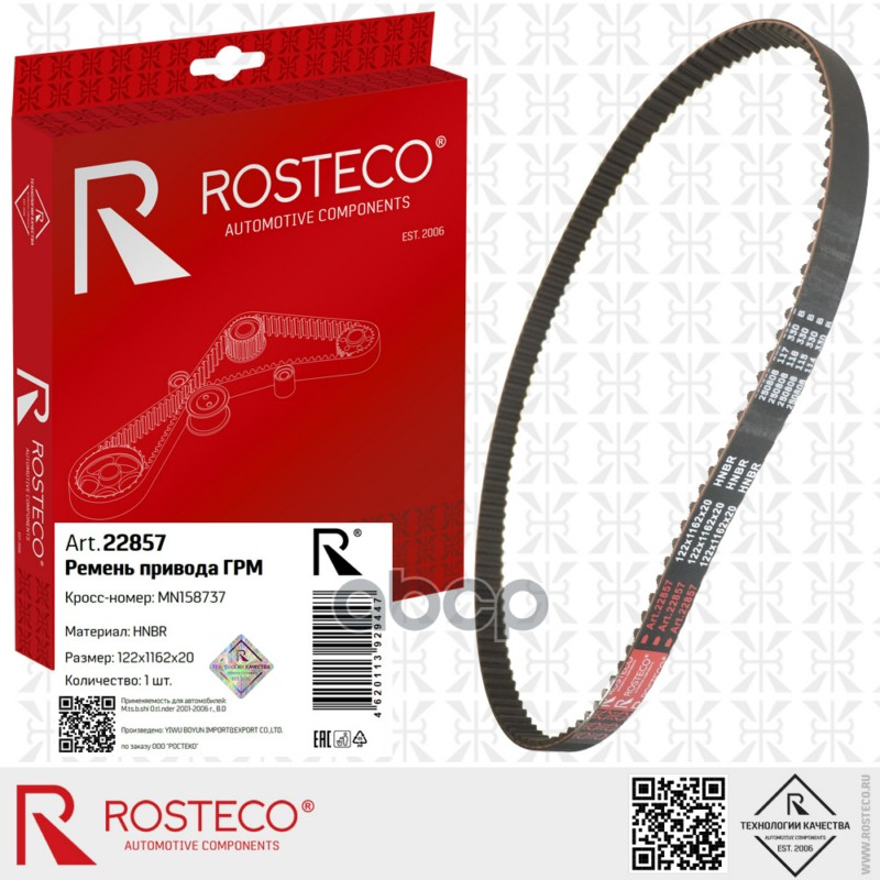 Ремень ГРМ MITSUBISHI Outlander (2001-06), BYD, (122x1162x20) HNBR . MN158737 "ROSTECO"