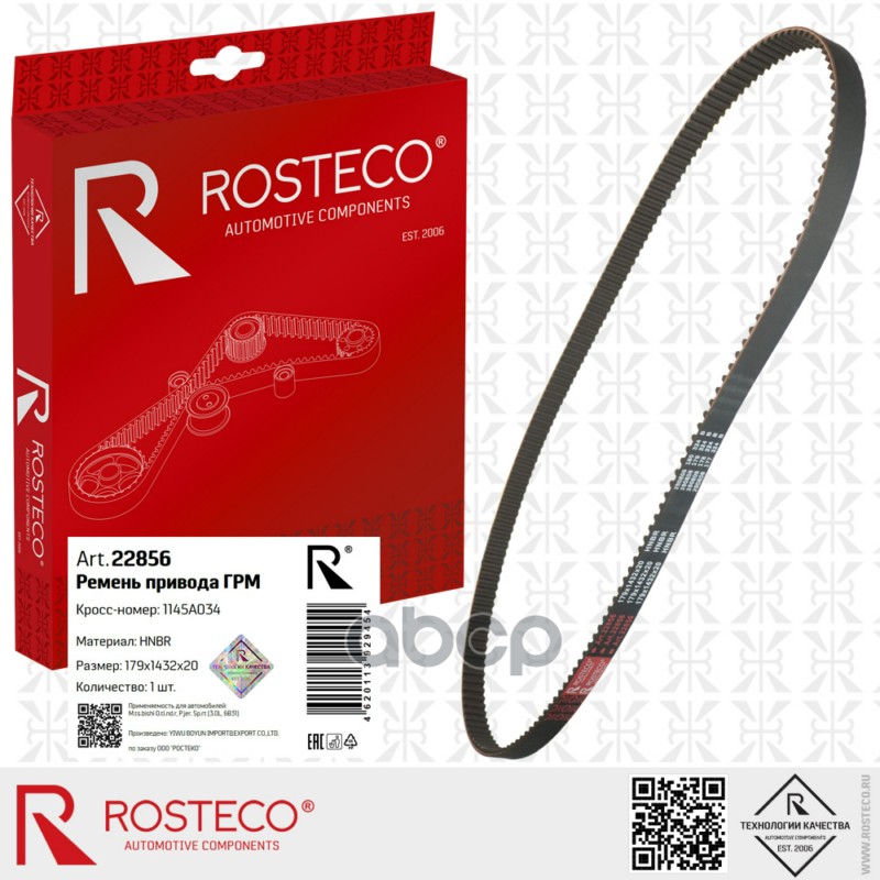 Ремень ГРМ MITSUBISHI Outlander, Pajero Sport (3.0L, 6B31) (179x1432x20) HNBR. 1145A034 "ROSTECO"
