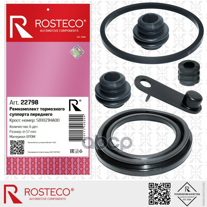 Ремкомплект суппорта HYUNDAI, переднего (d=57мм) (к-т 6 дет) EPDM. 581021HA00 "ROSTECO"