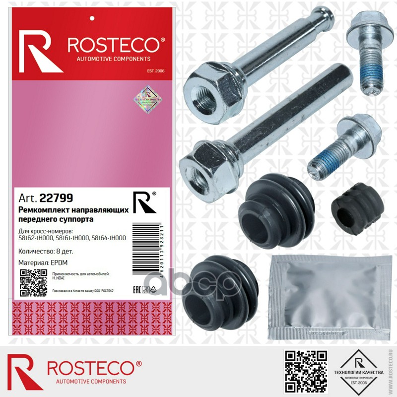 Ремкомплект суппорта HYUNDAI, переднего (к-т 7 дет.+смазка). 58162-1H000, 581611H000 "ROSTECO"