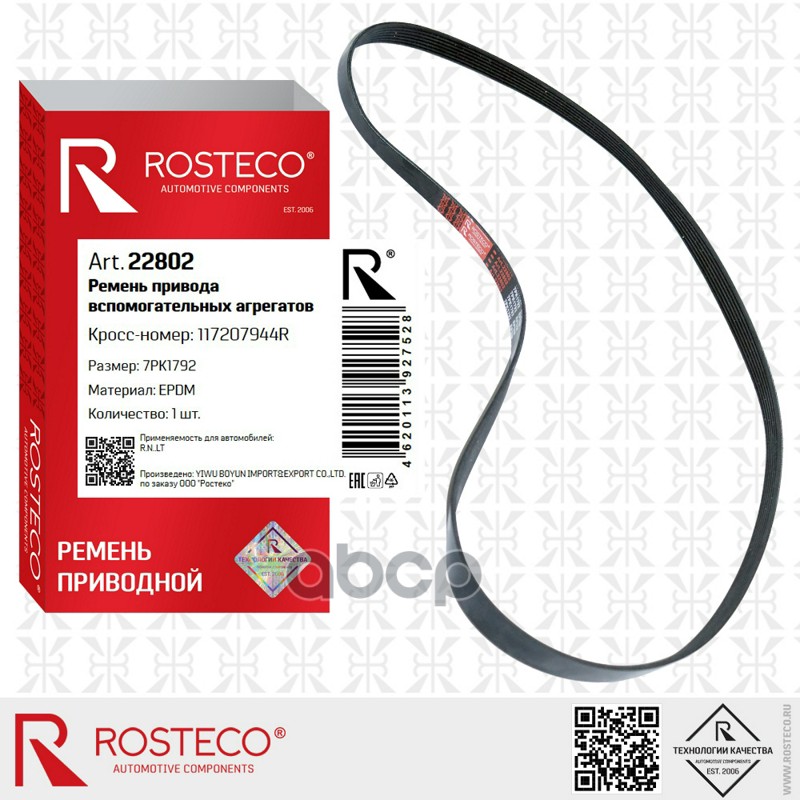 Ремень приводной FIAT, SUBARU, RENAULT, поликлиновый (7РК1792) EPDM. 117207944R "ROSTECO"