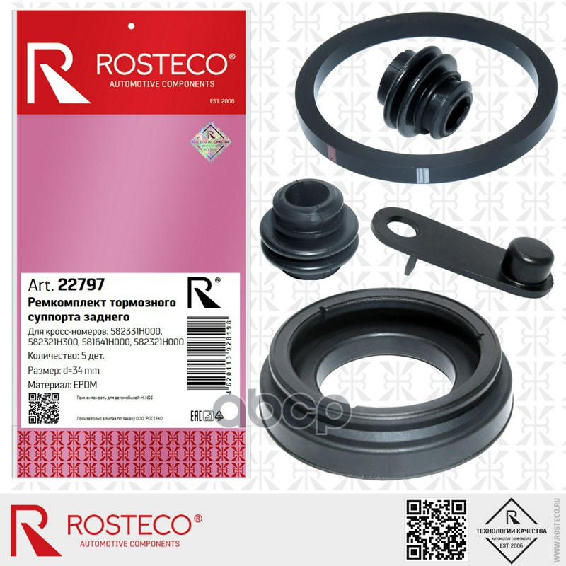 Ремкомплект суппорта HYUNDAI, заднего (d=34мм) (к-т 5 дет) EPDM. 582331H000, 582321H300 "ROSTECO"