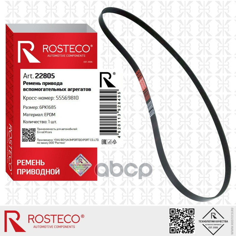 Ремень приводной LADA, УАЗ, FORD, GM, RENAULT, BMW, поликлиновый (6РК1685) EPDM. 55569810 "ROSTECO"