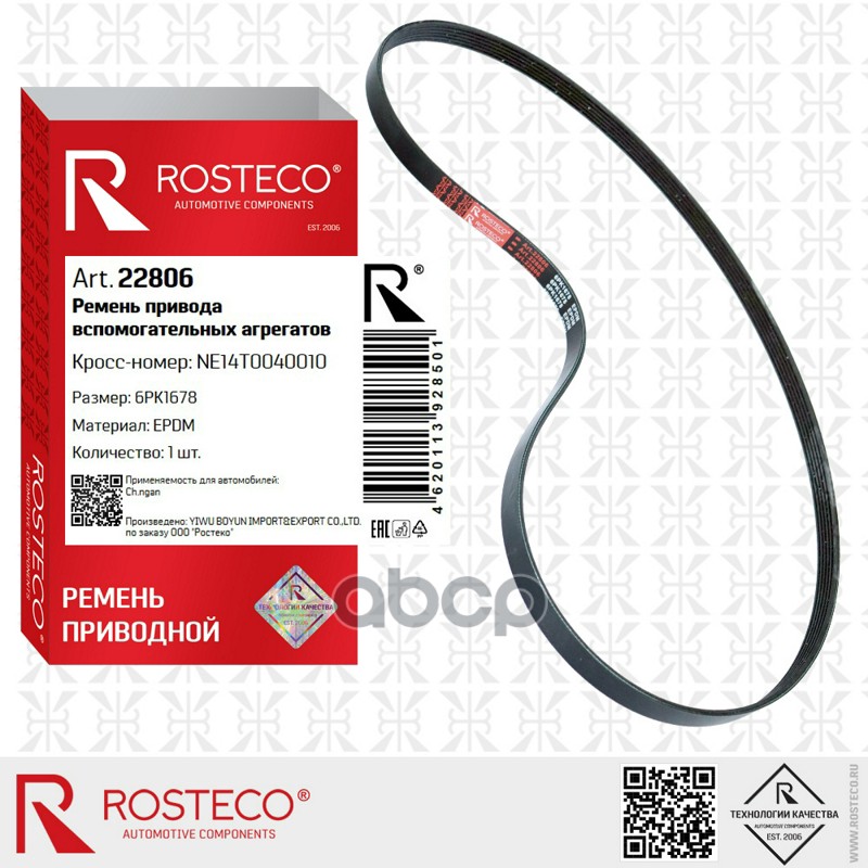 Ремень приводной FORD, TOYOTA, VAG, CHANGAN, поликлиновый (6РК1678) EPDM. NE14T0040010 "ROSTECO"