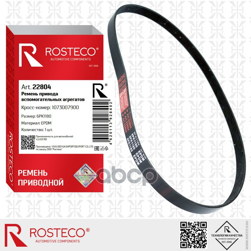 Ремень приводной SUBARU, GM, VOLVO, FIAT, поликлиновый (6РК1180) EPDM. 1073007900 "ROSTECO"