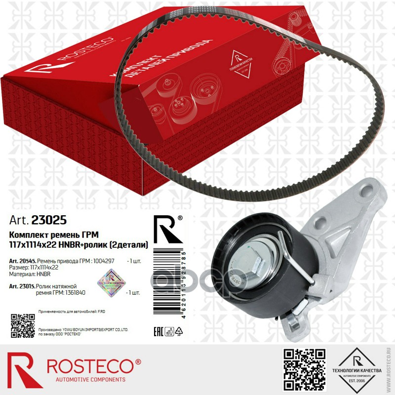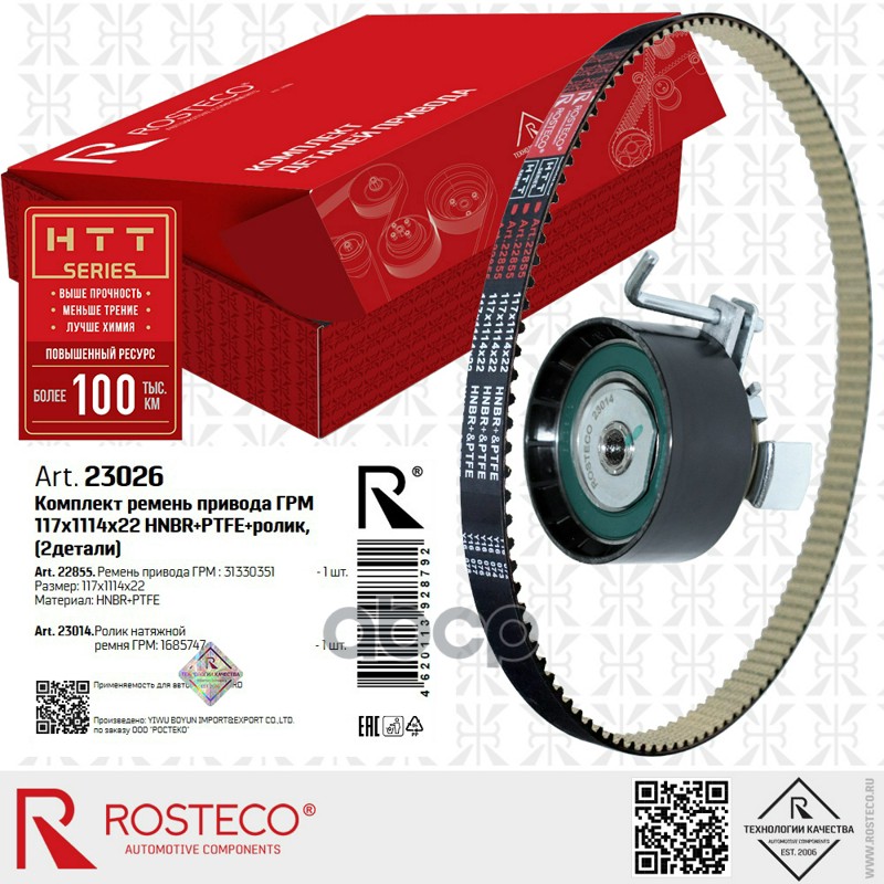 Ремкомплект ГРМ FORD, VOLVO, (ремень+ролик) (117х1114х22) HNBR+PTFE. 31330410, 31330416 "ROSTECO"