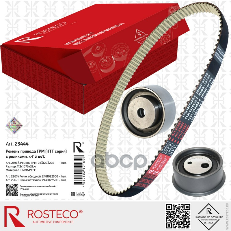 Комплект ГРМ HYUNDAI, (ремень+2 ролика) (113x1076x25,4) HNBR+PTFE. 21987, 22674, 22675 "ROSTECO"