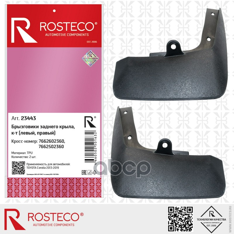Брызговик TOYOTA Corolla (13-19), задний (к-т 2 шт) TPU. 7662602360/7662502360 "ROSTECO"