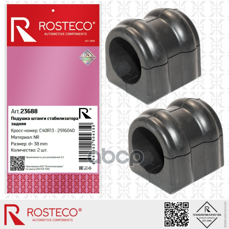 Втулка стабилизатора ГАЗ, заднего d=38мм (к-т 2 шт) NR. C40R13-2916040 "ROSTECO"