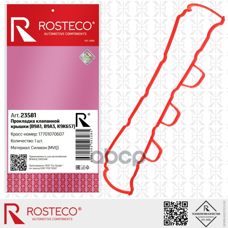 Прокладка клапанной крышки RENAULT, (B9A1, B9A3, K9K657) MVQ. 7701070607 "ROSTECO"