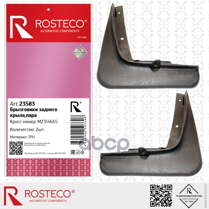 Брызговик задний MITSUBISHI Outlander, (2012-15) (к-т 2 шт) TPU. MZ314665 "ROSTECO"
