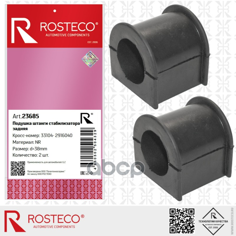Втулка стабилизатора ГАЗ, заднего d=38мм (к-т 2 шт) NR. 33104-2916040 "ROSTECO"
