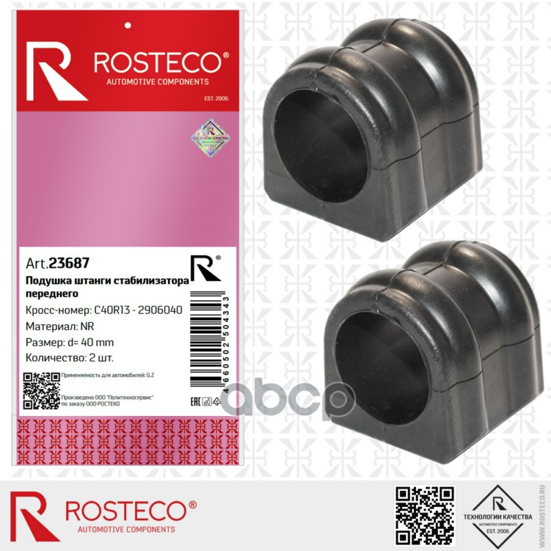 Втулка стабилизатора ГАЗ, переднего d=40мм (к-т 2 шт) NR. C40R13-2906040 "ROSTECO"