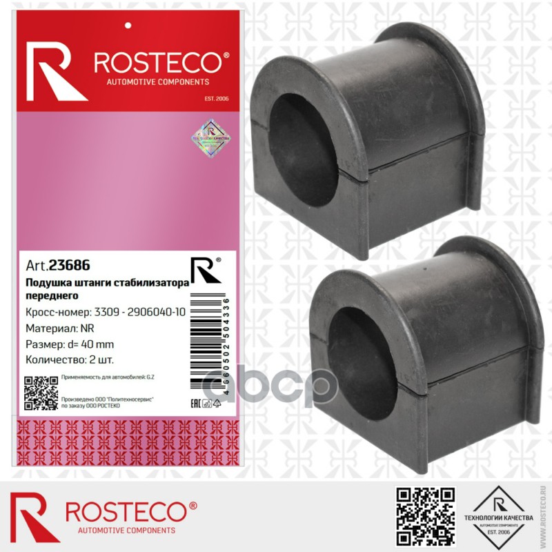 Втулка стабилизатора ГАЗ, переднего d=40мм (к-т 2 шт) NR. 3309-2906040-10 "ROSTECO"